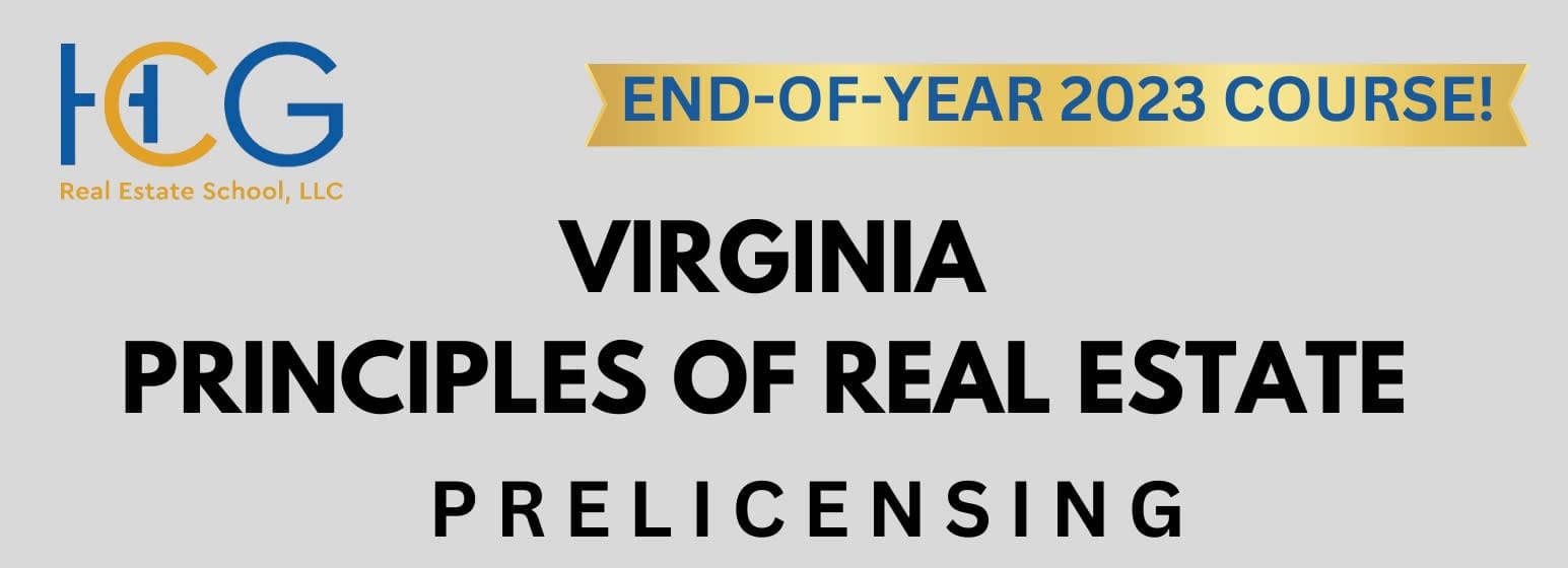 End-of-Year 2023 Course registration is open! SAVE $50 if registered by October 14, 2023! The first step in starting your career in real estate for Virginia is obtaining a license. Our 60-hour (32-hour seat-time hybrid) Principles of Real Estate Course will equip you with everything you need to obtain your Virginia Real Estate license and launch the real estate career of your dreams! Sessions will be taught with the convenient option to attend from anywhere you are virtually on Zoom with a live instructor. Fee includes eBooks embedded with study guides, videos, PLUS our HCG Real Estate Licensing & Career Launch Resource Guide to prepare you for the PSI exam! THIS COURSE FULFILLS THE 60-HOUR PRELICENSING COURSE REQUIREMENT. Deadline to register: November 15, 2023 Access the course schedule, details, registration and student reviews online at: End-of-Year 2023 Course